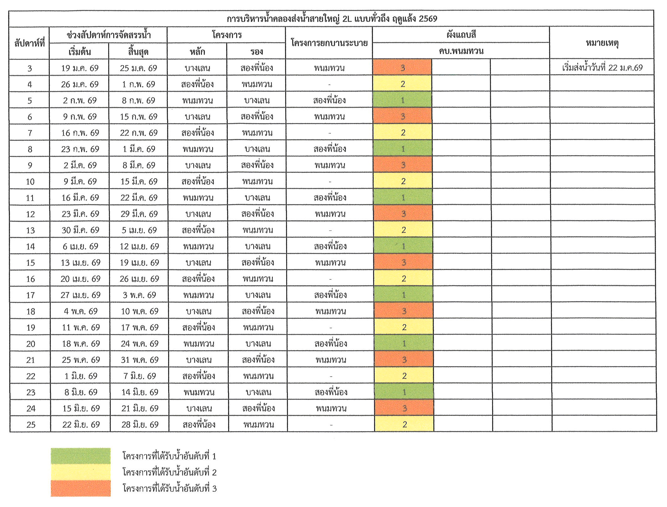 ประชาสัมพันธ์การบริหารน้ำคลองส่งน้ำสายใหญ่ 2L แบบทั่วถึง ฤดูแล้ง 2569
